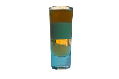 Preparación: En un caballito agregar la bebida Hpnotiq y después de manera muy lenta ir agregando poco a poco el Jägermeister, ya que lo que buscamos es que éste último se mantenga flotando en el caballito.